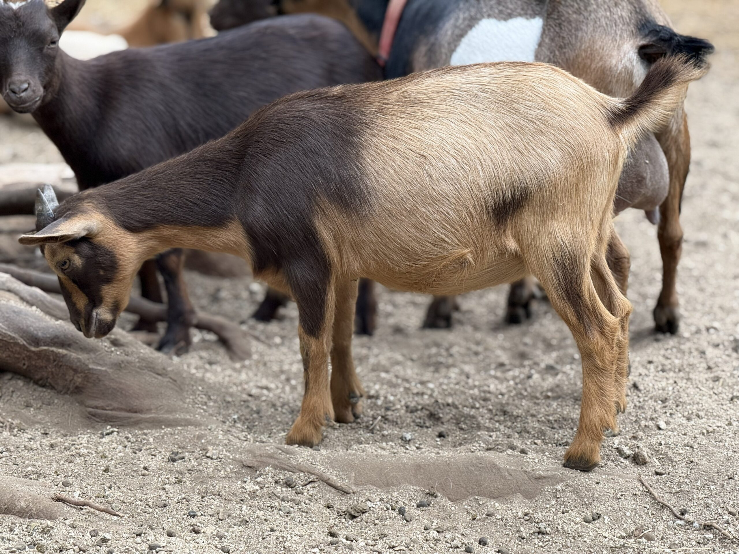 Both Apple and Forest are the sweetest personalities on the farm and the girls have all been blessed with similar, sweet affectionate natures. She also looks a bit like her Auntie, Mossy Rock PA Carnival 2*M EX 90 Select doe.